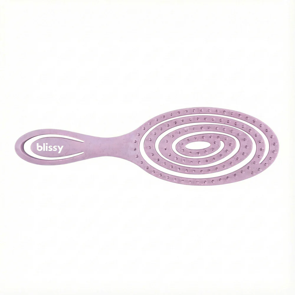 Flexible silicone bristles that bend with your hair—not against it. The Blissy Detangling Brush (Lavender) glides through knots and tangles without breakage, even on wet hair when strands are most vulnerable. The large paddle design covers more surface area in fewer strokes, while the open-air construction stays fresher between washes.