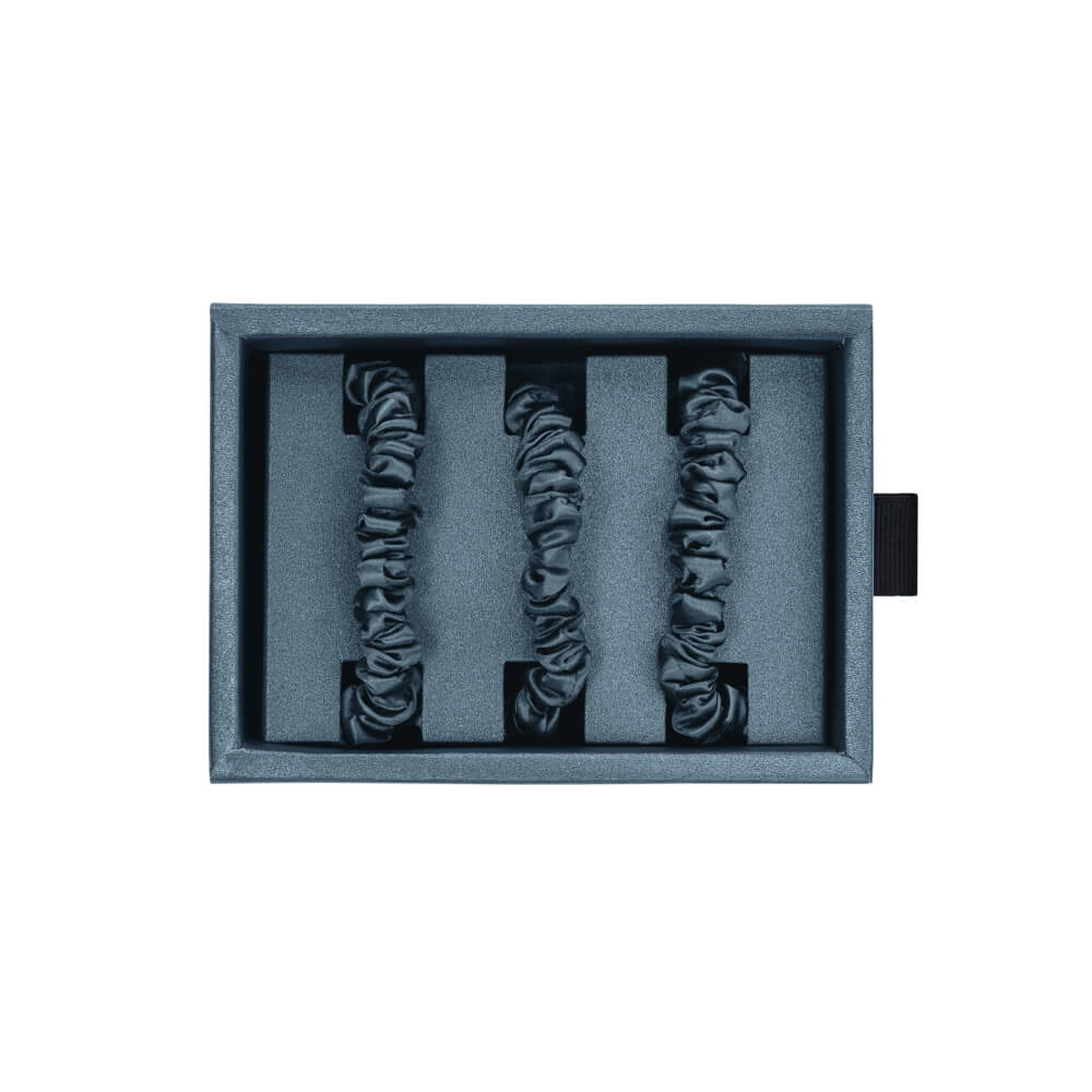 Blissy Ash Blue Skinny Scrunchies comes in a 3-pack so you always have extras.